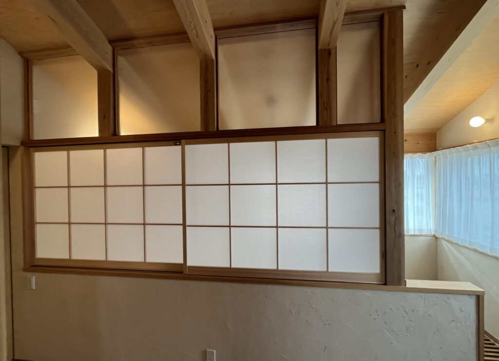 しかし、今のところ家族みんなで休めて、衣服などが置ける大きなクローゼットが一体となった1部屋さえあればいいということで、その部屋のみ仕切りとしています。