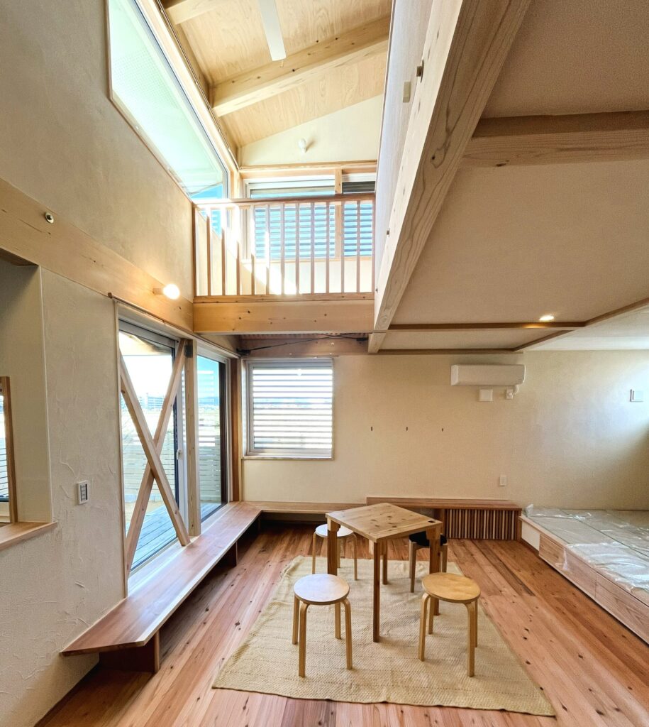この家も、タマゴグミの設計の特徴であるスケルトンインフィルで計画さ入れていますので、内部がすっきりと大空間が取れています。