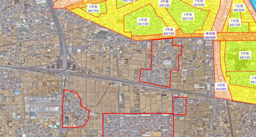 けど、赤で囲んだ地域にはなぜか家がたくさん建っていますね。